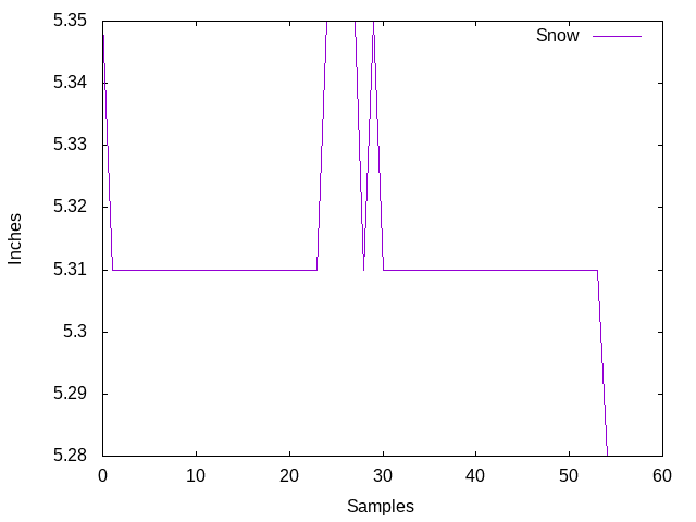 Maxbotix Ultrasonic Rangefinder Total Snow Depth accumulated on snow board.Plot below is for the past hour.